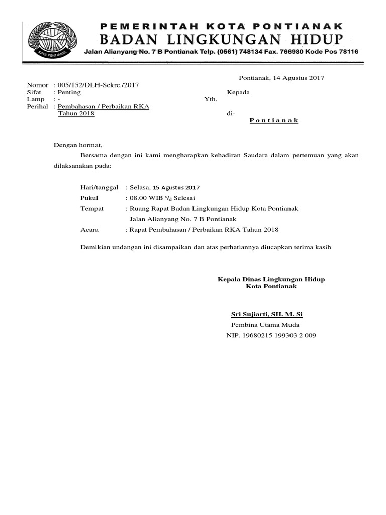 Contoh surat undangan rapat instansi pemerintah. Contoh surat undangan acara rapat. Surat resmi sendiri berfungsi sebagai media komunikasi yang dapat memberikan informasi contoh surat undangan resmi dari sekolah. Perhatikan hal berikut untuk menulis surat undangan Kriteria dalam pembuatan surat tidak resmi yang benar ialah sebagai berikut :